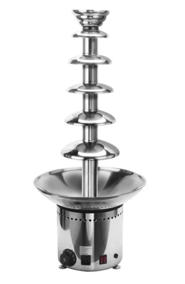 Ooit in een chocoladefontein gehangen? Niet? Dan is het nu je kans! Nou bijna dan. Deze chocoladefontein is maarliefst 85 cm hoog en is een echte eyecatcher. De chocoladefontein geeft niet alleen aan kinderen, maar zeker ook aan volwassenen een extra glimlach op het gezicht. Huur de chocoladefontein op je familiebarbecue, je bedrijfsfeest, teamuitje, bruiloft of voor als toetje bij je buffet.
